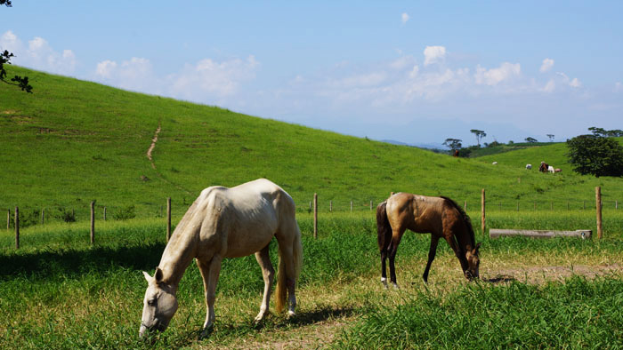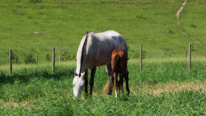 Como sempre, alguns destes animais se machucam no serviço, por vezes ficam em descanso ou aposentados, ocupando áreas uteis para os bovinos. Por este motivo, decidimos pela compra de um garanhão e de éguas, assim supriríamos a necessidade futura de equinos para trabalho.